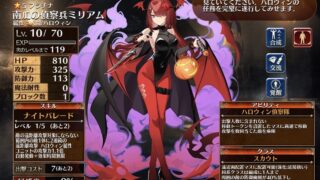 ゲーム 【千年戦争アイギス】南瓜の偵察兵ミリアムの性能評価まとめ!【ハロウィン】 こんにちはピヨたけです。 南瓜の偵察兵ミリアムの性能・評価について解説しています。 性能 クラス特性 クラス特性スカウト遠近両配置マスに配置可能(強化:近接扱い)同系クラスは編成に1人まで周囲の敵の防御魔耐が40%低下し、味方遠距離ユニット... 2025.10.15 ゲーム